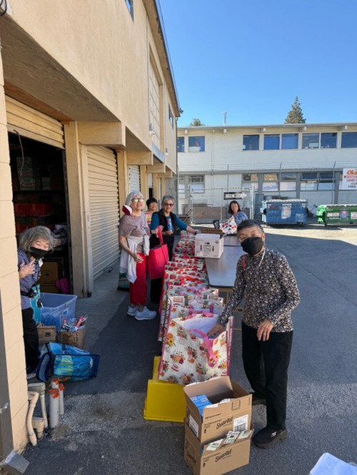 This is the fourth year the UWF has used some of the proceeds of the Rummage Sale to purchase household goods like laundry detergent, fabric softener, dish soap, kitchen towel & sponge, toothbrushes and toothpaste, a treat for the children, foil, tape and other small items to give to families that come to the Wesley Food Distribution. Donations of toothbrushes, dental floss and toothpaste were given courtesy of Sage Dental facilitated by Dr Brittany Chou and Dr Grant Shimizu, Barbara Hiura, Judie Kanemoto, and Barbara Mulford donated toothbrushes also. Mary Horio donated a goodie bag, Terri Koike made and donated tissue holders, Bev Acuna donated sponges. In our first year the UWF made 20 bags, last year we made 40, this year we assembled 60. Lillian Flores connects us to 45-48 low-income families with children who attend Grant Elementary School and each will receive one. We have other families who live in the neighborhood and have children aged 17 and younger, who will receive a bag until we run out. The smiles and joy of the people who look in their bag are heartwarming.