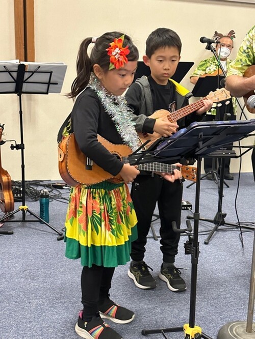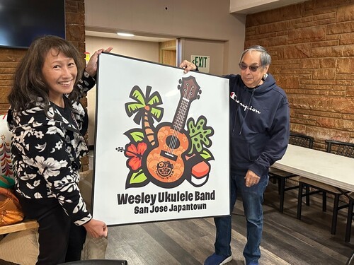Since its founding in 2004, the Wesley Ukulele Band has grown and changed but the continuity has been in its leadership with Tina Urata as the band leader, with Smiley Kai, our music and sound manager and Becky Soffiotto, as our music co-leader. Our membership has become a little smaller with a core of 25 ukulele musicians and five Hula Dancers. In the past 22 years, WUB has become a familiar face around town, performing at a variety of venues bringing Hawaiian and Japanese music and Hula dancing to communities around the Bay Area. In 2023, under the guidance of Tina, Smiley, and Mark Teagle began a Keiki (youth) addition to the band which now has 4 members. They performed Easter Sunday, Family Camp, our 130th Anniversary, at the Scout event. This year, the WUB has presented our unique Wesley performance style at the following locales.