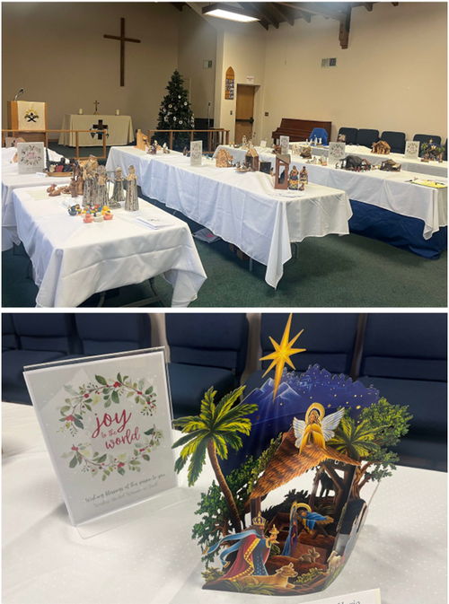 Merry Christmas Creche display [12/08/24]: Our Nichigo chapel was the perfect setting for this church-wide Nativity display. Did you notice the delicately carved wood from Europe? Maybe the whimsical rubber ducky set brought a smile. Or did you linger to study all the many layers of blended paints. All guests were treated to this magical display of awesome artistic creations depicting a spirit of a very Holy Night.