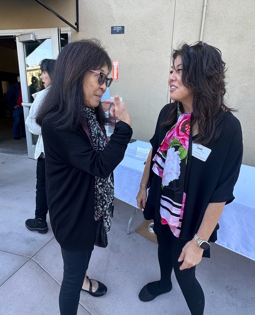 Rob Hikido (left) was one of the principle project team members and conversed with Mari Mineta Clapp.