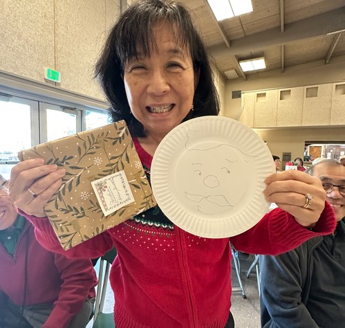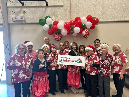 What is not to like about the Primetimer Christmas Party. Not only is it a staple during our holiday season, it is a sought after event. The food is perhaps the best offerings from the church. These folks really know how to cook. And the desserts...Wow! I mean even guava cupcakes. Along with the tasty food to inspire one's palate, there was entertainment from the Wesley Ukulele Band to bring Christmas music to fill one's ears, and hula to fill one's sight. Then of course, there were games to make one think. This always generates buzz. Special this year was the "Stump Mark Hector" competition. To begin his stint, Hector told stories of interesting respiratory clients whose lives and character were inspirational. But most hilarious was how often he was stumped by the truth and lies told by the participants. Our Primetimers have perfected the art of telling both truths and lies with a very straight and honest face. It certainly was a full afternoon of food, fun, and games and it was all quite delightful.