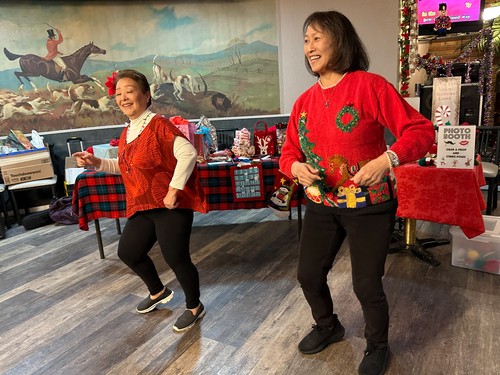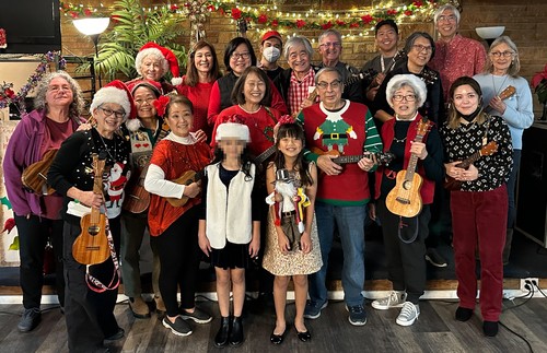 The Wesley Ukulele Band held their Christmas Party at 4th St. Bowl on Dec. 14, and it was a blast. Cheryl Koshiro and Tina Urata danced.